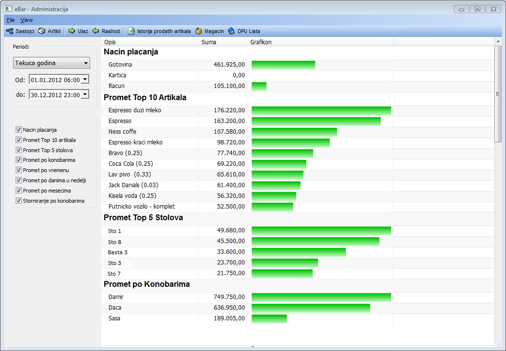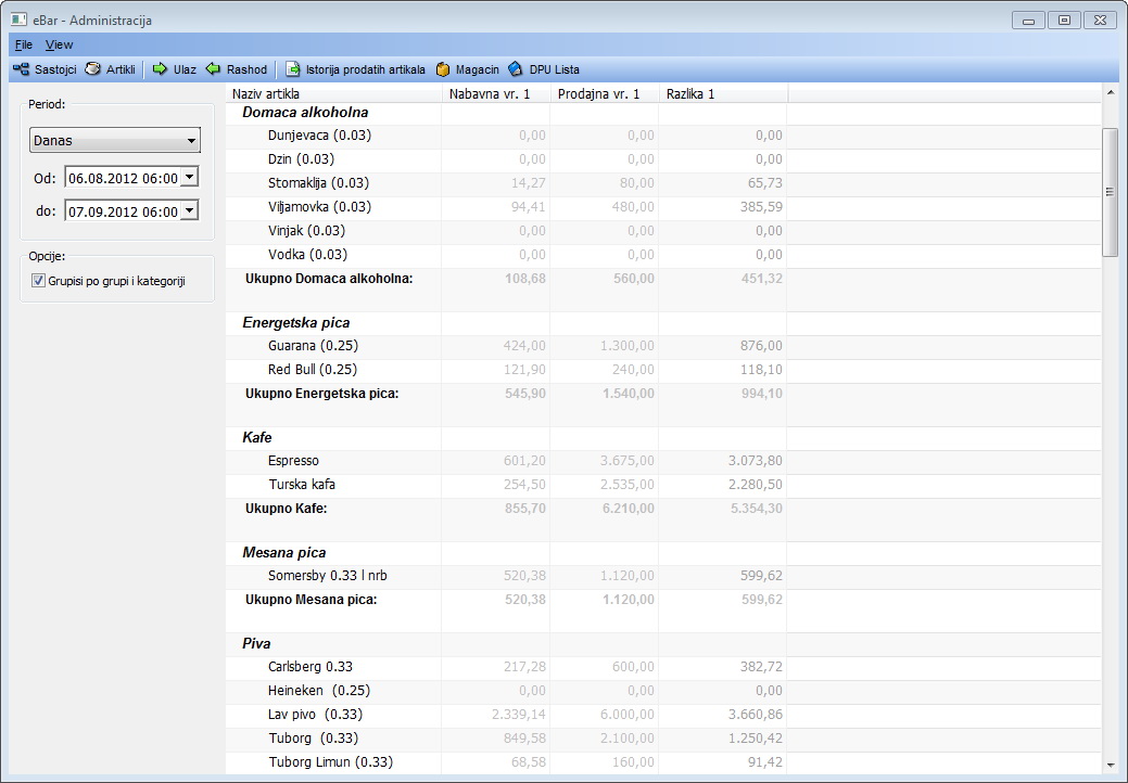Pregled zarade po artiklima