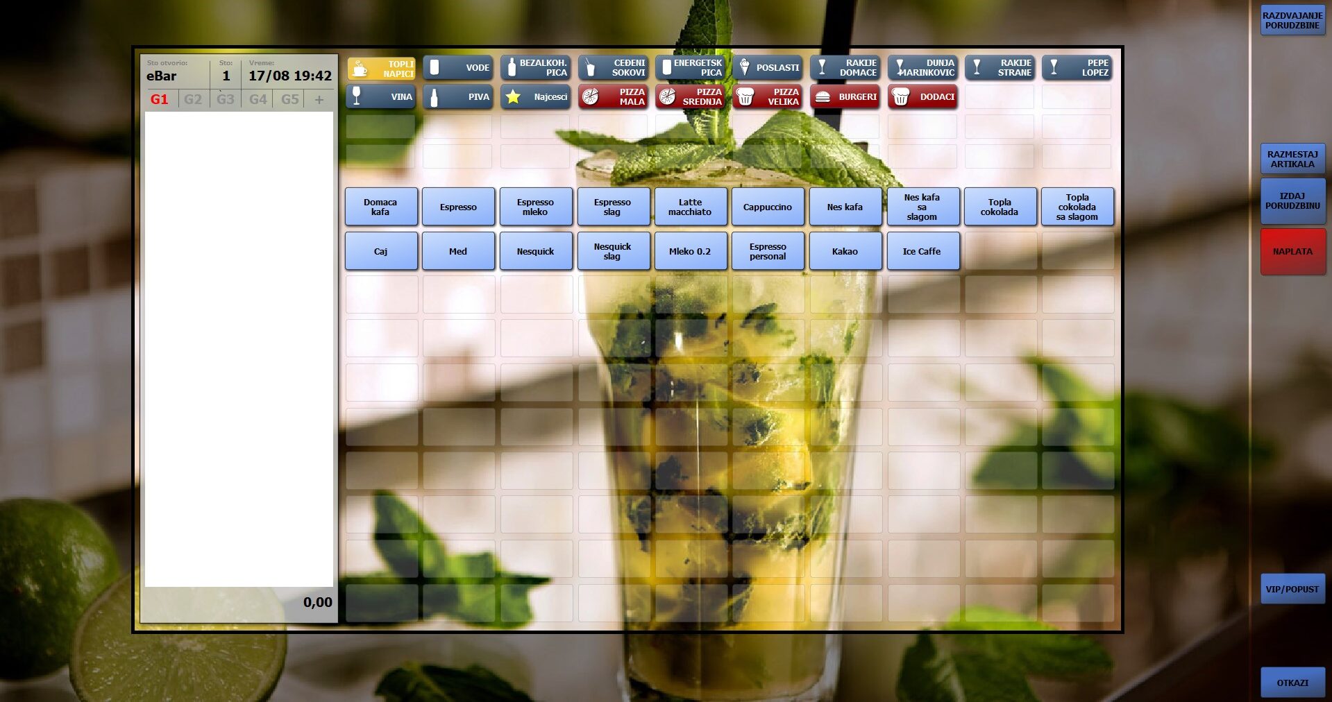 Poslovanje ugostiteljskog objekta u velikoj meri zavisi od optimizacije rada. Brzo usluživanje klijenata je imperativ, ali to zahteva dobru organizaciju posla. eBar je moderan, potpuno prilagodljiv sistem za vođenje poslovanja u ugostiteljskom objektu (restoranu, kafiću, pabu, diskoteci, pekari…), koji će vam omogućiti upravo to – bolju organizaciju posla i uštedu resursa.